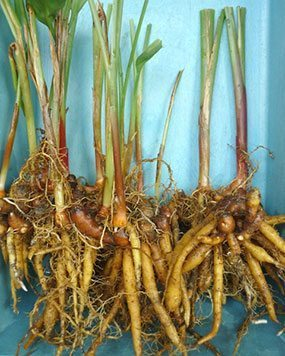 15. ช่วยแก้อาการท้องร่วง ท้องเดิน ด้วยการใช้เหง้าสด 1-2 เหง้า ใช้เหง้าที่ปิ้งไฟแล้วนำมาฝนหรือตำผสมกับน้ำปูนใส หรือจะคั้นให้ข้น ๆ แล้วนำมารับประทานครั้งละ 1-2 ช้อนชาก็ได้ (เหง้า, ราก)