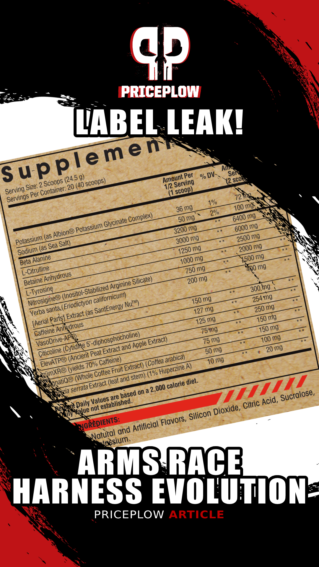 The label and video leak is below — but first, be sure to sign up for PricePlow’s Arms Race Nutrition news alerts so that you get notified when it’s on sale: