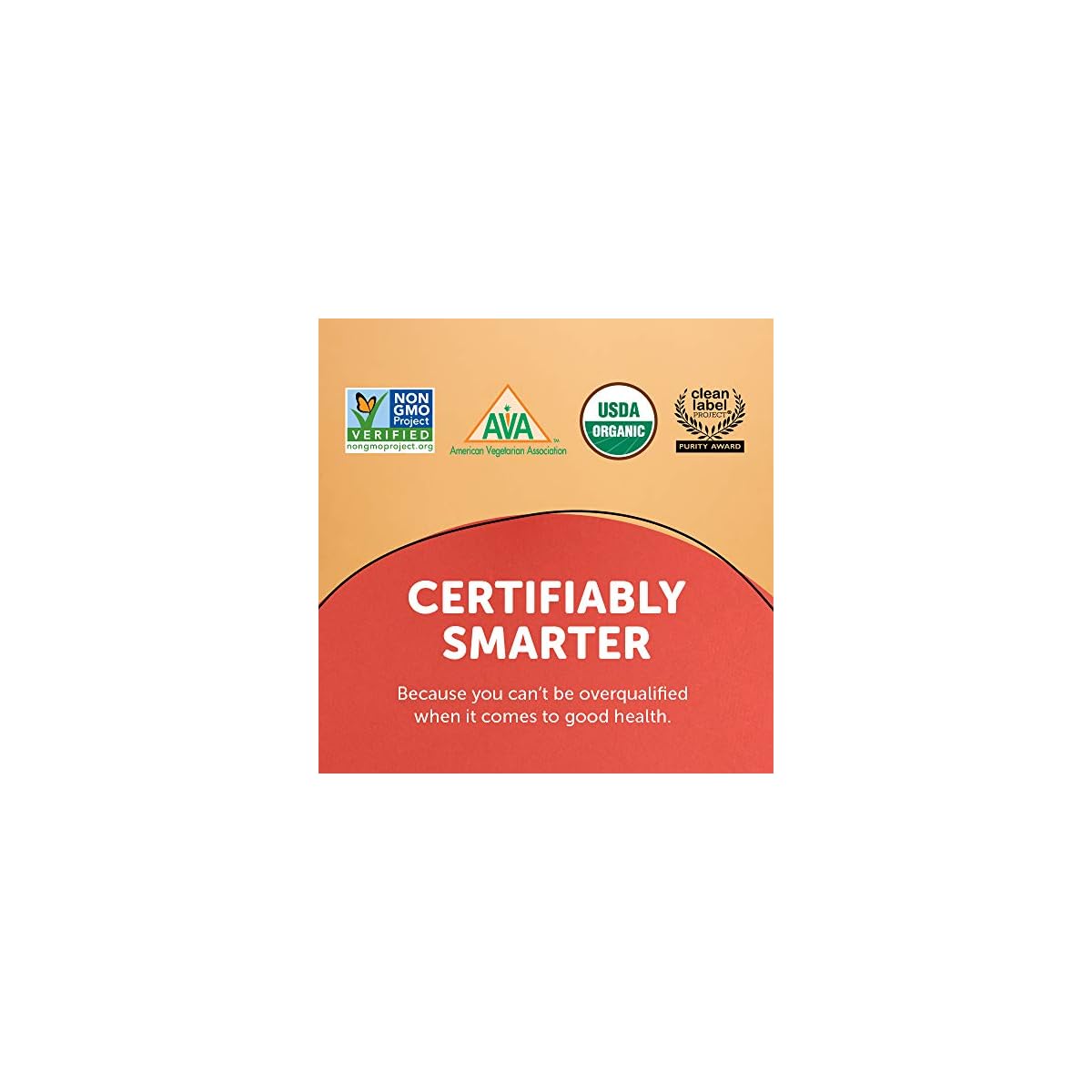 Certified Organic and vegetarian. Includes vegetarian omega-3 α-Linolenic acid, sourced from organic flaxseed oil