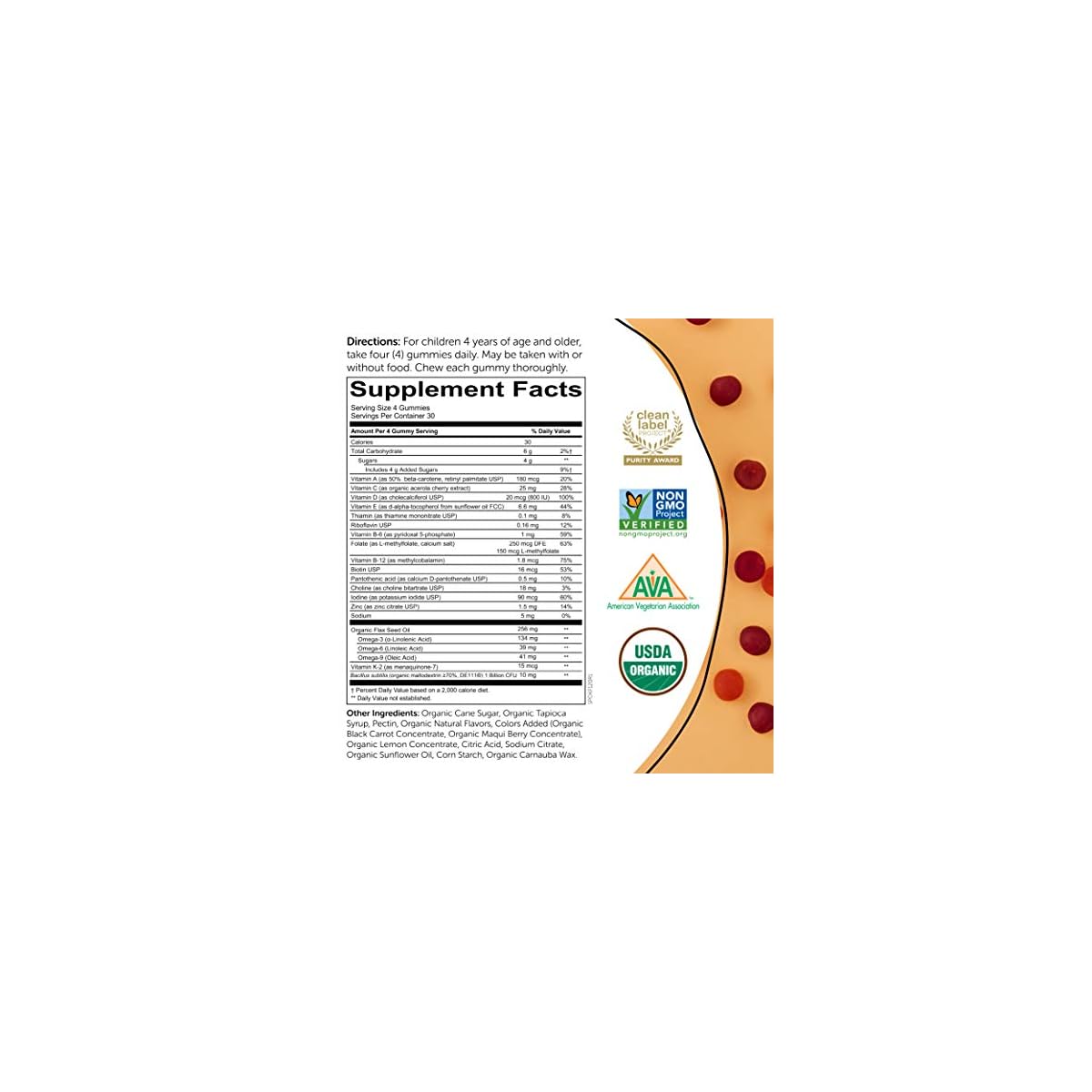 This chewable organic vitamin contains 14 essential nutrients including vitamin D3 for strong bones and teeth,* vegetarian omega-3 and vitamin B12 for immunity – all in one delicious gummy