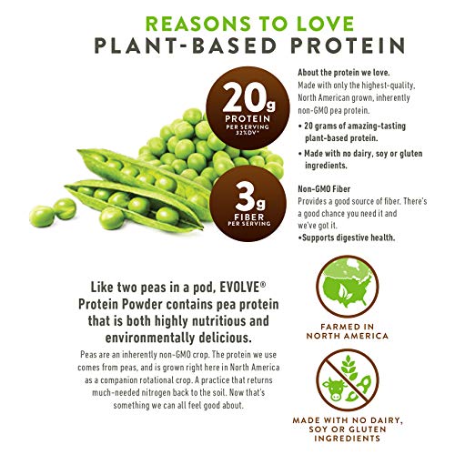 Highly nutritious and environmentally delicious and dash; Evolve protein shakes are made with North American grown, inherently Non GMO pea protein; Peas are grown as a companion rotational crop, returning much needed nitrogen back to the soil