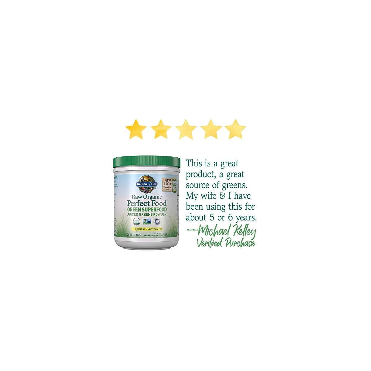 Garden of Life Raw Organic Perfect Food Green Superfood Juiced Greens Powder – Original Stevia-Free, 30 Servings, Non…