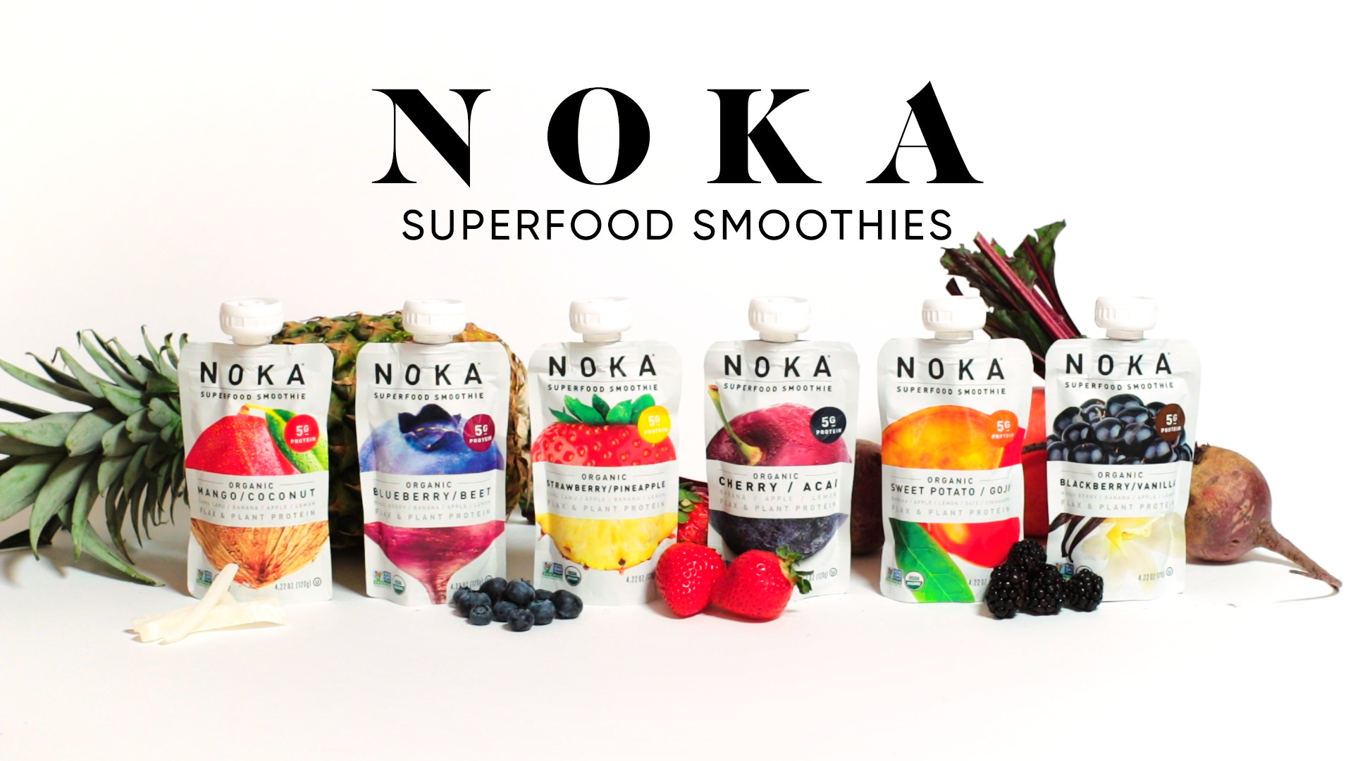HEALTHY SNACK FOR ALL AGES: Our delicious smoothies are suitable for ALL ages! NOKA is made with a mix of organic fruits, veggies, 5g of plant protein, flax seed, healthy fats and antioxidant-rich superfoods for balanced nutrition on-the-go.