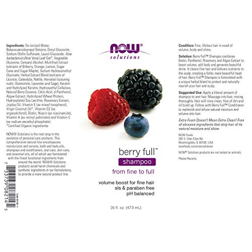 NOW Solutions, Berry Full™, Volume Boost Shampoo for Fine Hair with Biotin, pH Balanced, 16-Ounce