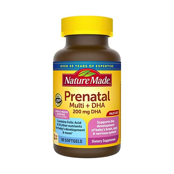 Nature Made Prenatal with Folic Acid + DHA, Prenatal Vitamin and Mineral Supplement for Daily Nutritional Support, 90…