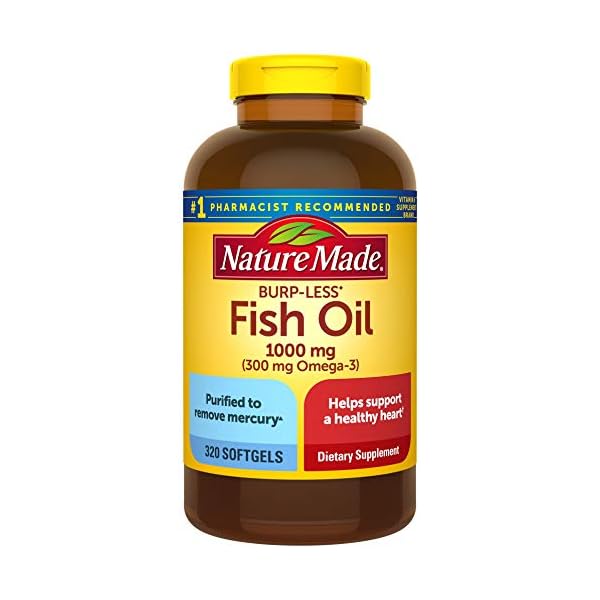 Nature Made Burp Less Fish Oil 1000 mg Softgels, Omega 3 Fish Oil for Healthy Heart Support, Omega 3 Supplement with 320…