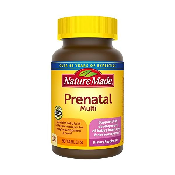 Nature Made Prenatal Multi, 90 Tablets, Folic Acid + 17 Prenatal Vitamins & Minerals to Support Baby Development and Mom…