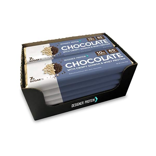 Designer Protein 85% Dark Chocolate Bar with Crispy Quinoa, 2.15 Ounce (Pack of 12)