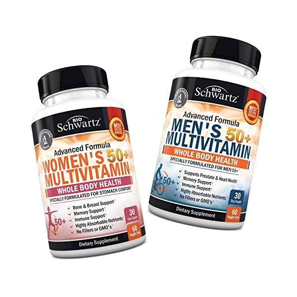 OPTIMAL IMMUNE DEFENSE: BioSchwartz Advanced Formula Women’s Multivitamin 50+ and BioSchwartz Advanced Formula Men’s Multivitamin 50+ are formulated with Vitamins C & Zinc to help fight off free radicals that can damage immune cells, keeping your immune system healthy and strong.