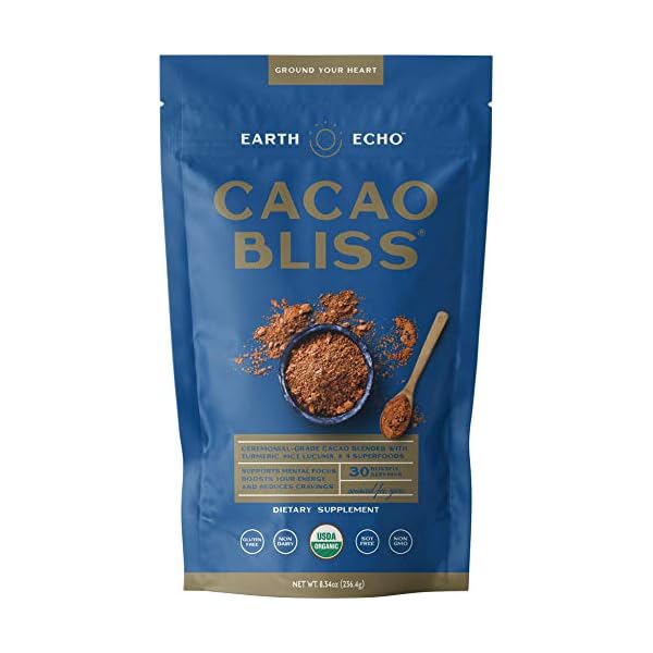 Earth Echo: Cacao Bliss – Organic Chocolate Powder Mix with Cinnamon, Turmeric, MCT Oil and Lucuma for Hot Cocoa…